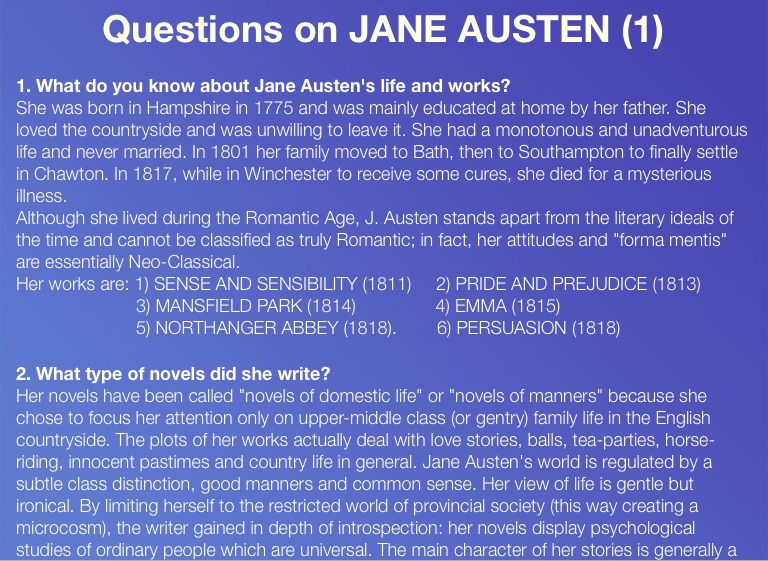 Questions on JANE AUSTEN (1)