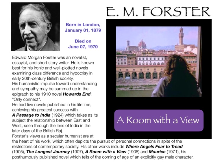 the heart of his work, which often depicts the pursuit of personal connections in spite of the restrictions of contemporary society. His other works include Where Angels Fear to Tread (1905), The Longest Journey (1907), A Room with a View (1908) and Maurice (1971), his posthumously published novel which tells of the coming of age of an explicitly gay male character.