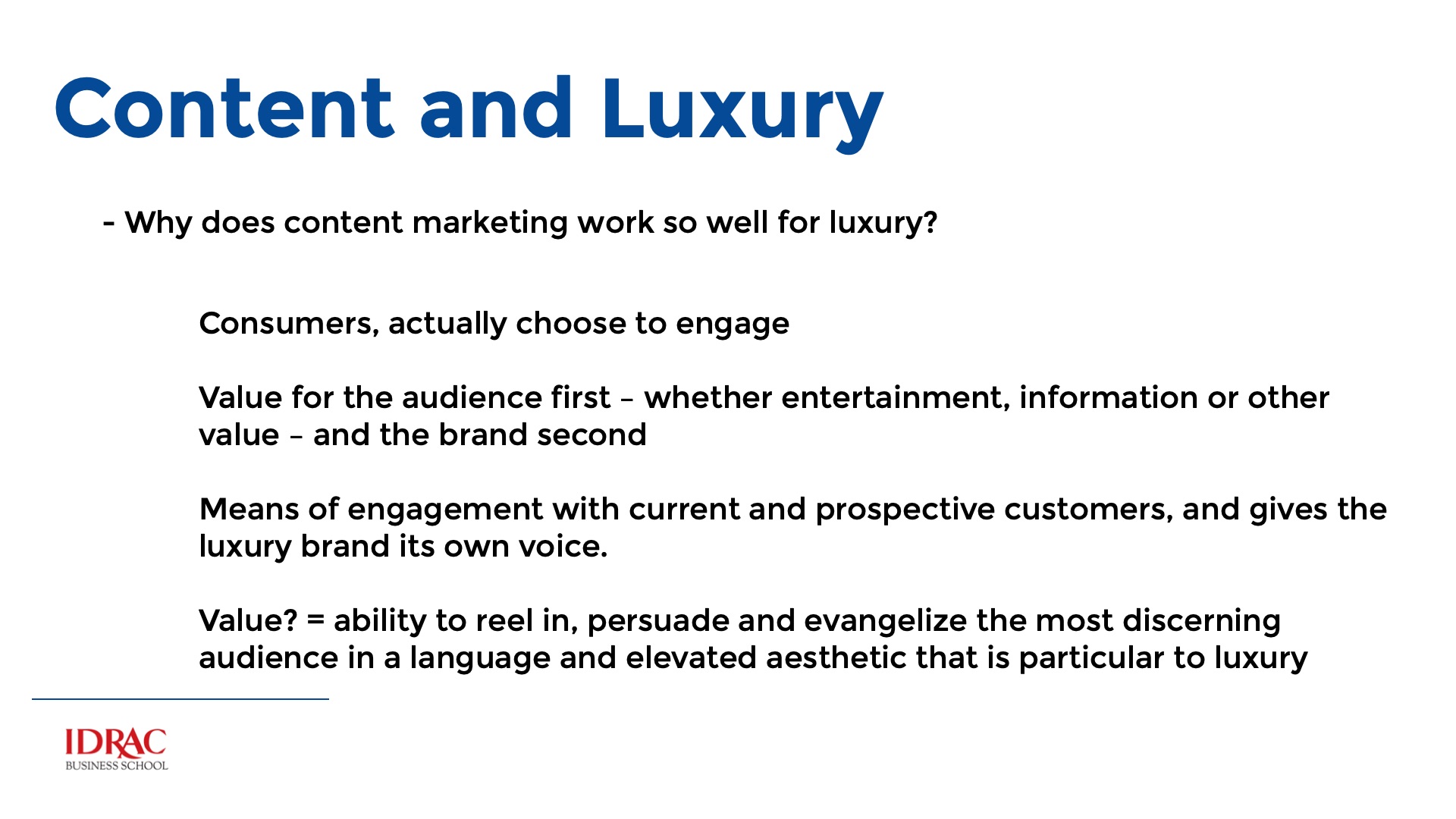 Means of engagement with current and prospective customers, and gives the luxury brand its own voice.