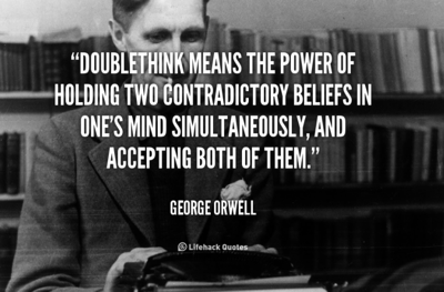 The idea of “doublethink” emerges as an important consequence of the Party’s massive campaign of large-scale psychological and linguistic manipulation. Simply put, doublethink is the ability to hold two contradictory ideas in one’s mind at the same time. As the Party’s mind-control techniques break down an individual’s capacity for independent thought, it becomes possible for that individual to believe anything that the Party tells them, even while possessing information that runs counter to what they are being told.