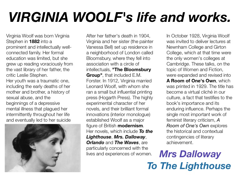 VIRGINIA WOOLF's life and works.
