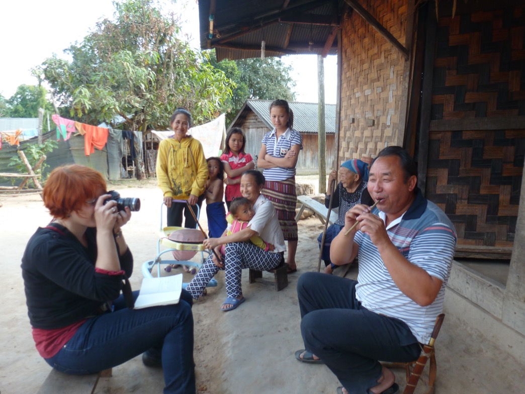 Two cameras were used during the field trips, one for the pictures, the other to record videos of musicians. In this picture, Dr Lissoir recorded the head of a (H)mong village showing the TAEC team a traditional reed instrument.