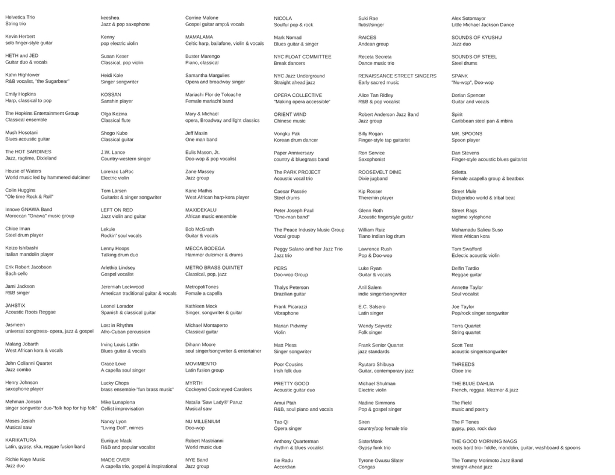 Research List of MUNY Registered Subway Performers- 2 of 3 Slides