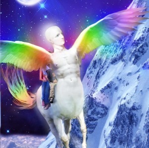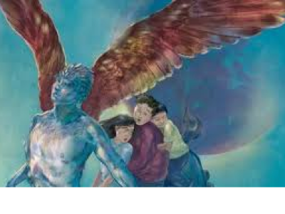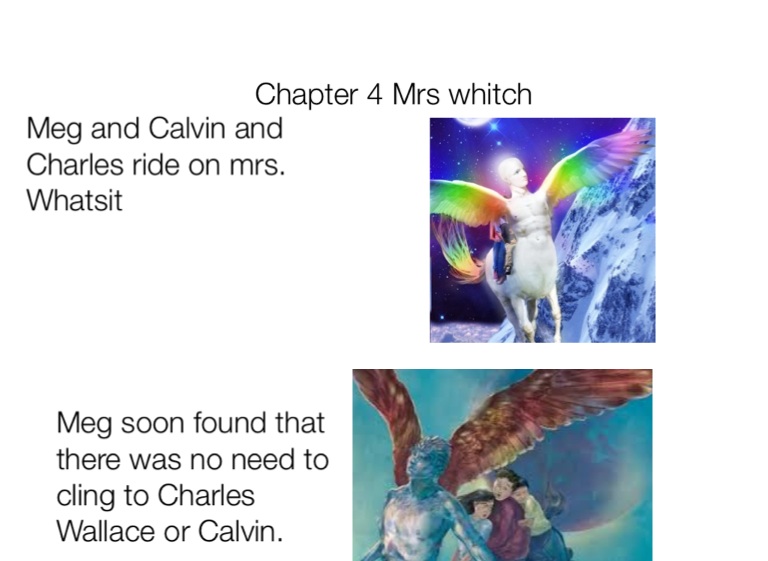 Meg and Calvin and Charles ride on mrs. Whatsit