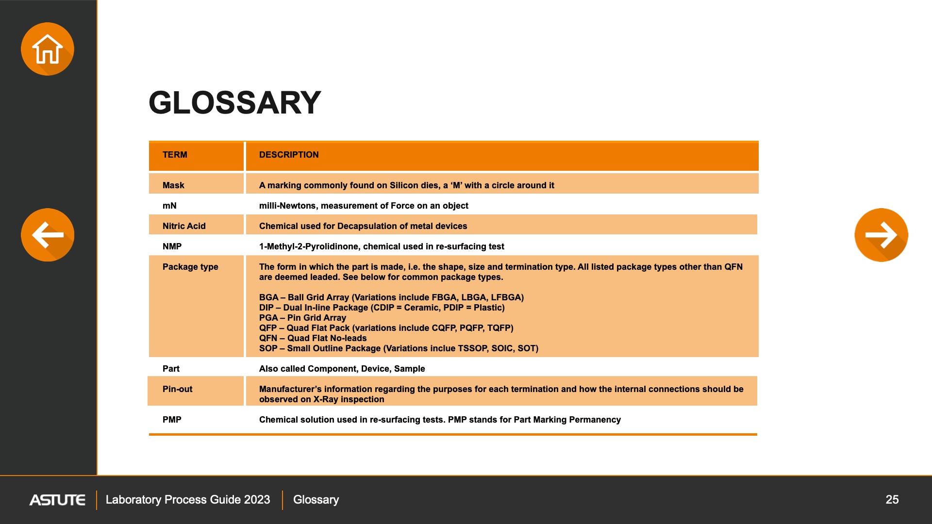 Chemical solution used in re-surfacing tests. PMP stands for Part Marking Permanency