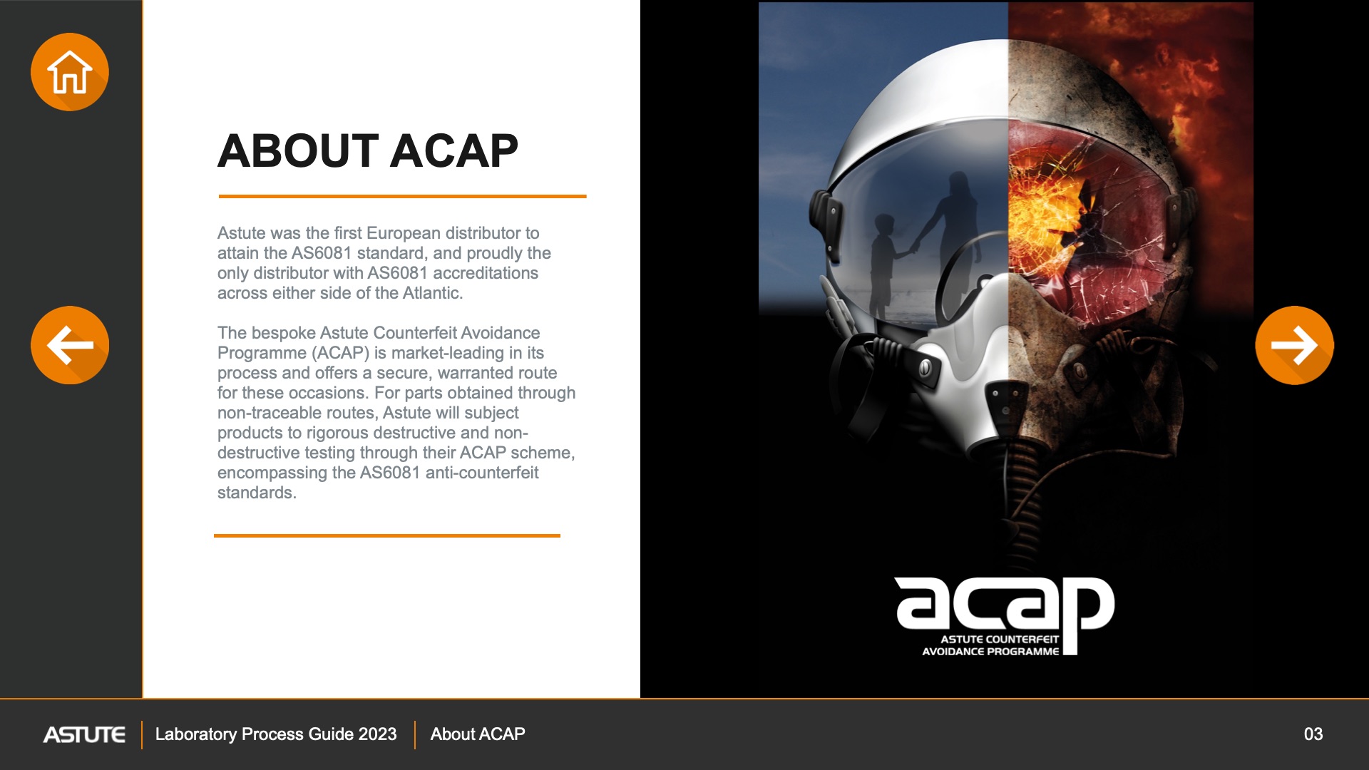 The bespoke Astute Counterfeit Avoidance Programme (ACAP) is market-leading in its process and offers a secure, warranted route for these occasions. For parts obtained through non-traceable routes, Astute will subject products to rigorous destructive and non-destructive testing through their ACAP scheme, encompassing the AS6081 anti-counterfeit standards.