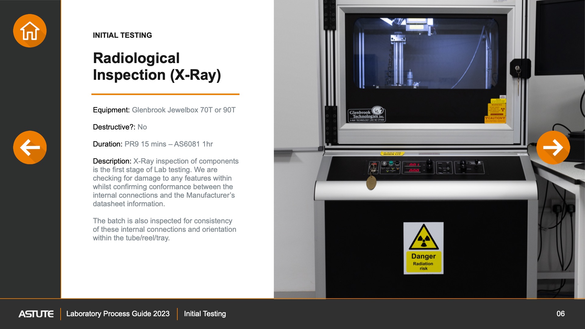 Description: X-Ray inspection of components is the first stage of Lab testing. We are checking for damage to any features within whilst confirming conformance between the internal connections and the Manufacturer’s datasheet information.