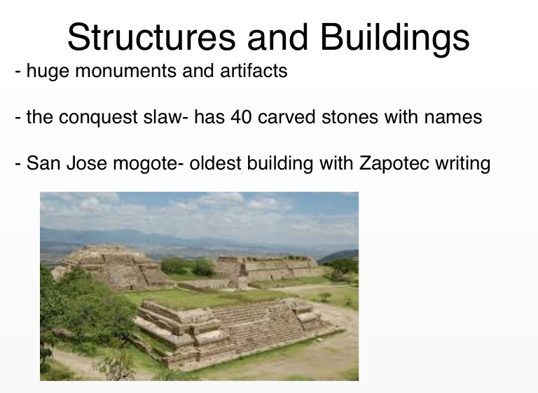 - San Jose mogote- oldest building with Zapotec writing