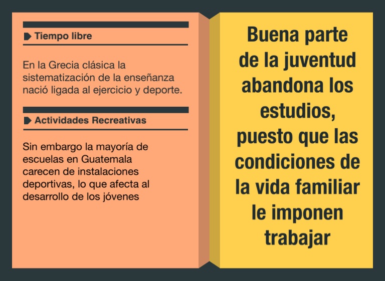 Sin embargo la mayoría de escuelas en Guatemala carecen de instalaciones deportivas, lo que afecta al desarrollo de los jóvenes