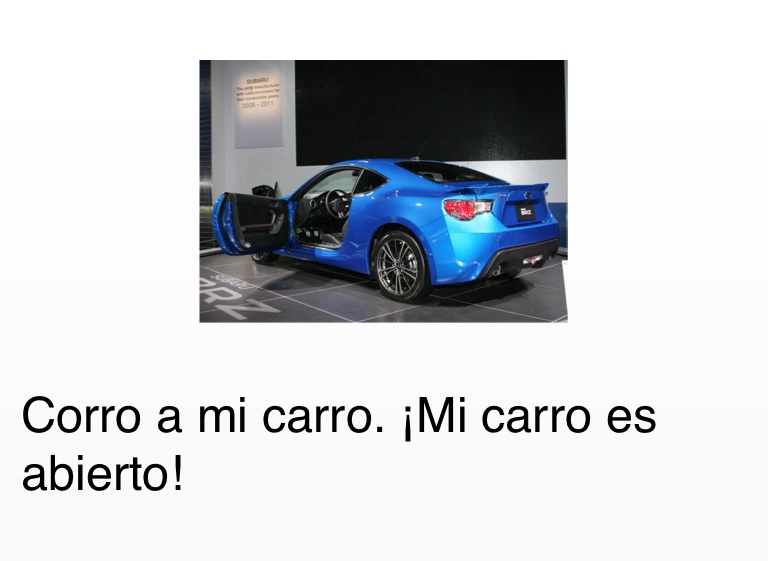 Corro a mi carro. ¡Mi carro es abierto!