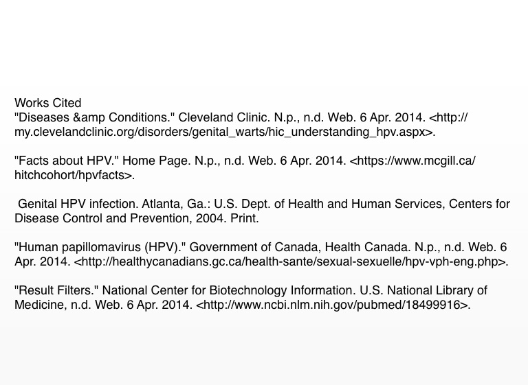 "Facts about HPV." Home Page. N.p., n.d. Web. 6 Apr. 2014.