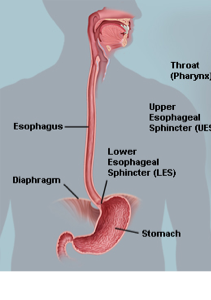 On my way down from the hole I hit a flap (epiglottis) that led me to a long tube (Esophagus). There are strange waves about every second pushing me further down into the tube (peristalsis). Finally, I plummet into a large pit (stomach) filled with a burning liquid (Hydrochloric Acid, Gastric Juices).