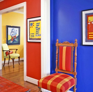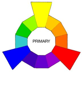 One of the three colors red, yellow, or blue which can be mixed together to make other colors.