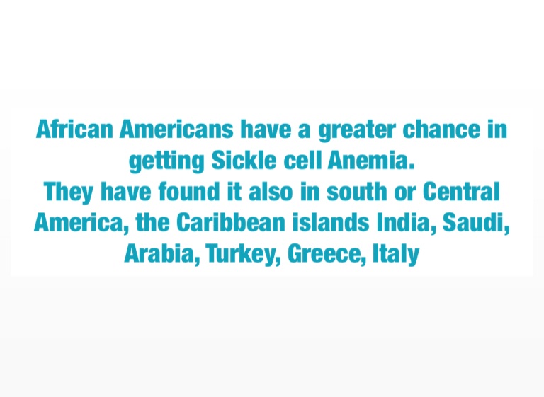 African Americans have a greater chance in getting Sickle cell Anemia.