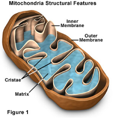 inner membrane is folded up inside the organelle, and has cristae to increase surface area for energy production