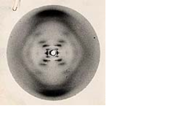 picture of DNA that had been crystallized under moist conditions shows a fuzzy X in the middle of the molecule, a pattern indicating a helical structure.
