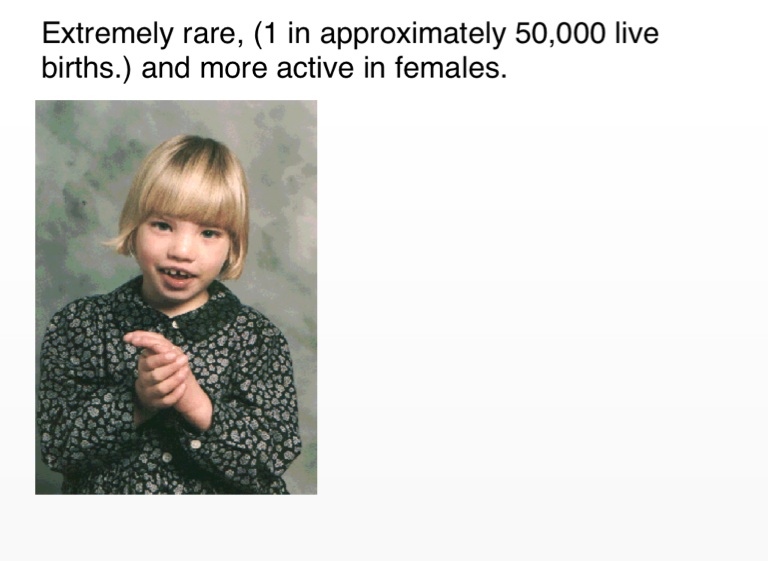 Extremely rare, (1 in approximately 50,000 live births.) and more active in females.