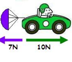 If you are walking your dog but you don't want your dog to run away you are pulling while your dog is walking way from you. Say the dog is pulling with 10 N and you only have 8 newtons. When you subtract because they are pulling opposite ways you get. 2 Newtons