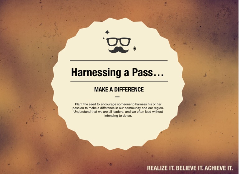 Plant the seed to encourage someone to harness his or her passion to make a difference in our community and our region. Understand that we are all leaders, and we often lead without intending to do so.