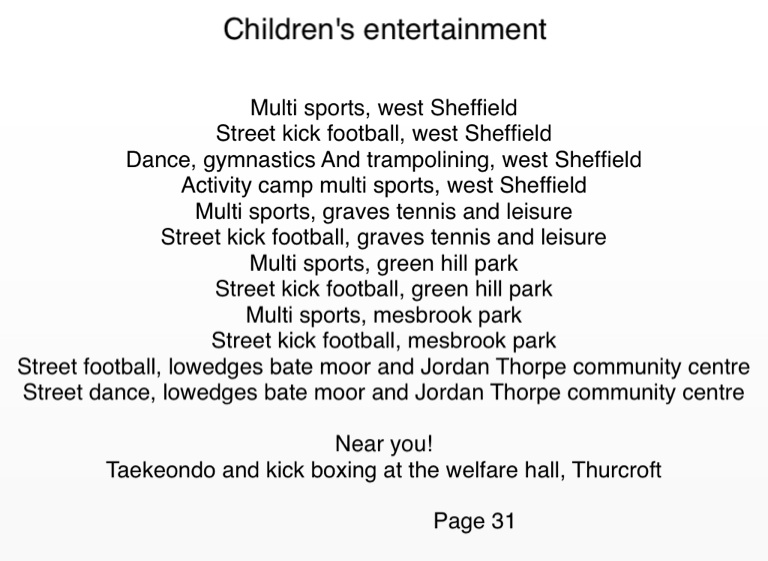 Activity camp multi sports, west Sheffield