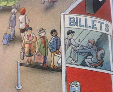 John et sa famille sont à la gare. Ils vont aller de Paris à Lille. John acheté deux billets au guichet. Ils sont aller-retours en seconde.