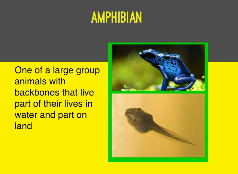 One of a large group animals with backbones that live part of their lives in water and part on land