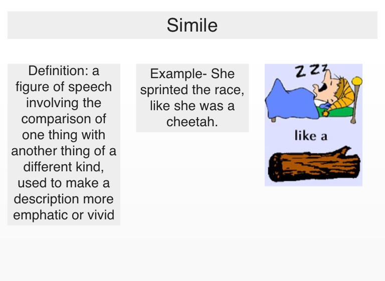 Definition: a figure of speech involving the comparison of one thing with another thing of a different kind, used to make a description more emphatic or vivid