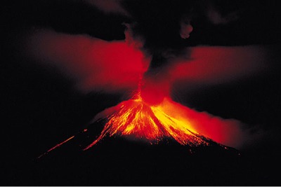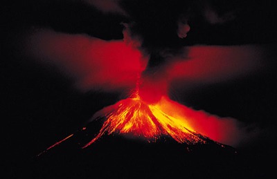 The volcano Arenal is an explosive volcano. The magma inside the volcano is really thick, so when it comes out it just can't all come out in a flow. The lava has a high viscosity.