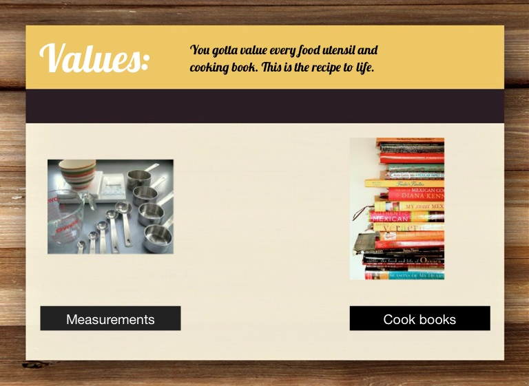 You gotta value every food utensil and cooking book. This is the recipe to life.