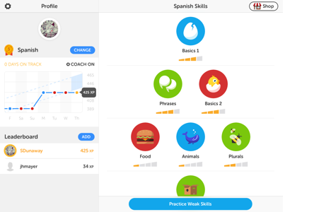 In Spanish class Duolingo is used as a way to test your knowledge in a real world application.