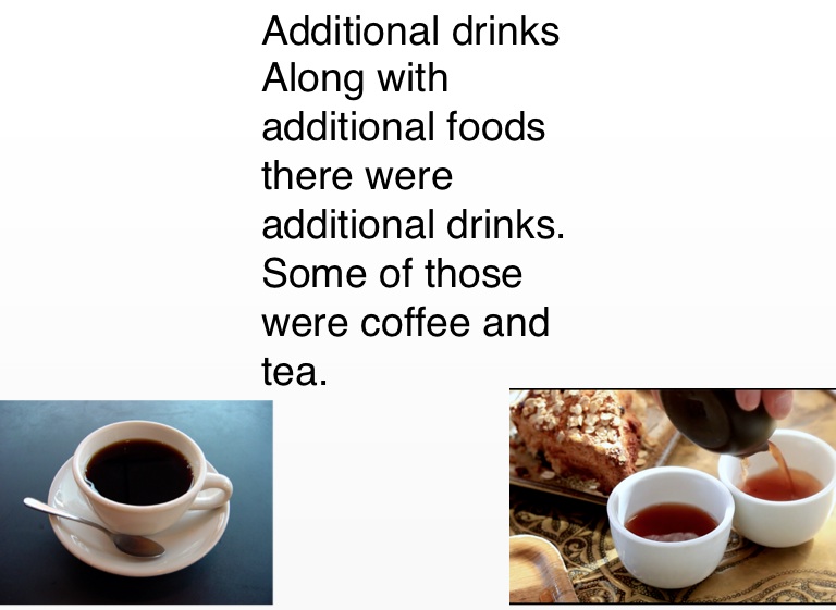 Along with additional foods there were additional drinks. Some of those were coffee and tea.