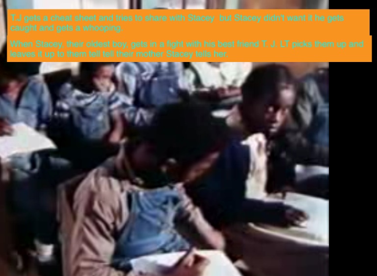 T.J gets a cheat sheet and tries to share with Stacey but Stacey didn't want it he gets caught and gets a whooping.