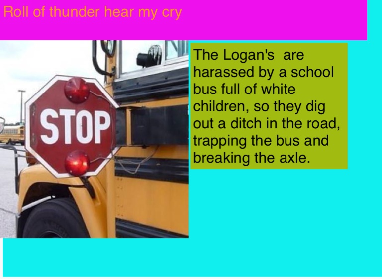 The Logan's are harassed by a school bus full of white children, so they dig out a ditch in the road, trapping the bus and breaking the axle.
