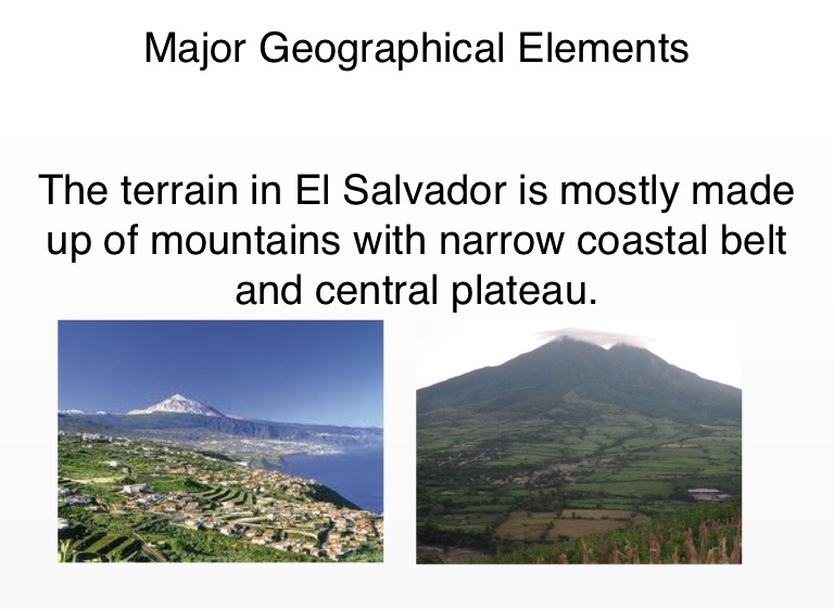 The terrain in El Salvador is mostly made up of mountains with narrow coastal belt and central plateau.