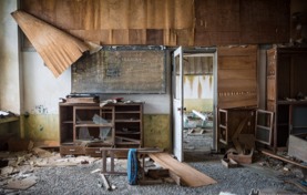* In an instant people left , bikes were left at their side oo the streets, the chock board had not been erased, and the homes were never packed. It was left a ghost island.