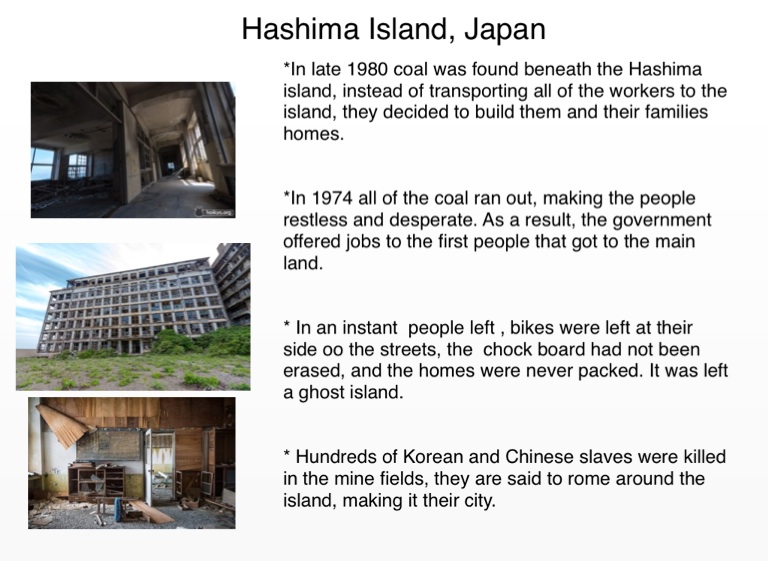 *In late 1980 coal was found beneath the Hashima island, instead of transporting all of the workers to the island, they decided to build them and their families homes.