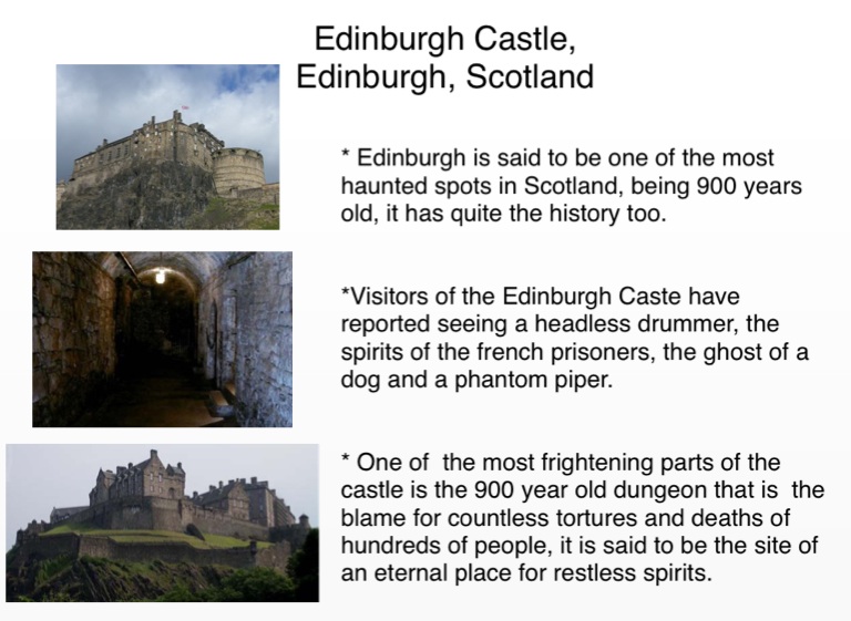 *Visitors of the Edinburgh Caste have reported seeing a headless drummer, the spirits of the french prisoners, the ghost of a dog and a phantom piper.
