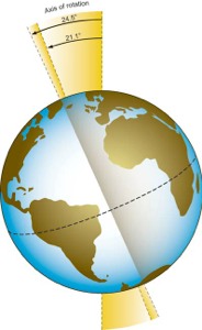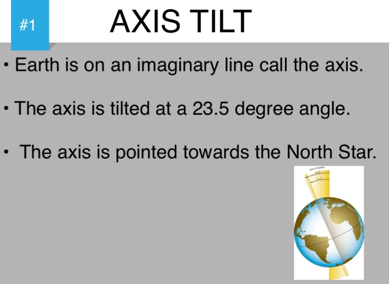 • The axis is tilted at a 23.5 degree angle.