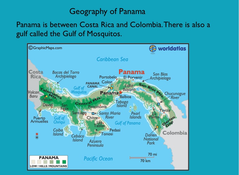Panama is between Costa Rica and Colombia. There is also a gulf called the Gulf of Mosquitos.