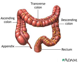 The colon is the widest part in the large intestine. The water and minerals (such as salt) are absorbed and carried to the body.