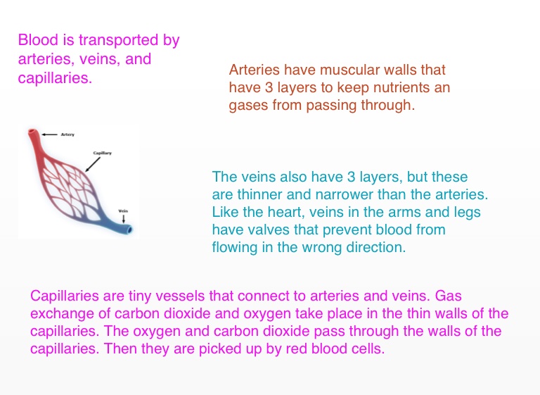The veins also have 3 layers, but these are thinner and narrower than the arteries. Like the heart, veins in the arms and legs have valves that prevent blood from flowing in the wrong direction.