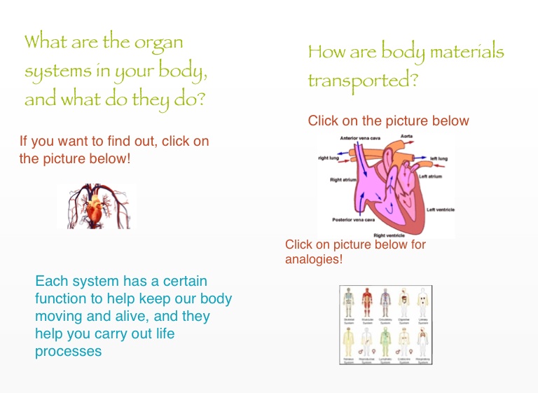 Each system has a certain function to help keep our body moving and alive, and they help you carry out life processes