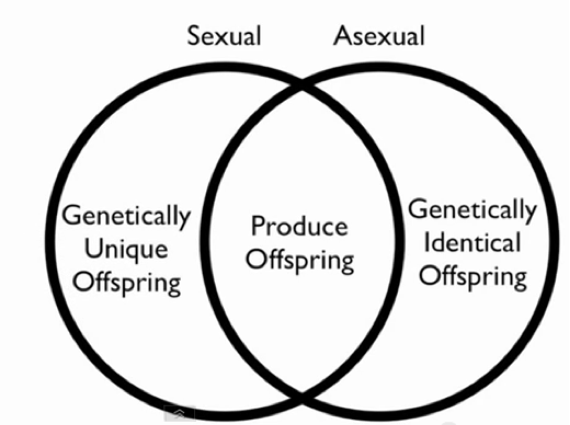 Asexual- comes from a single organism & inherit the genes of that parent only.