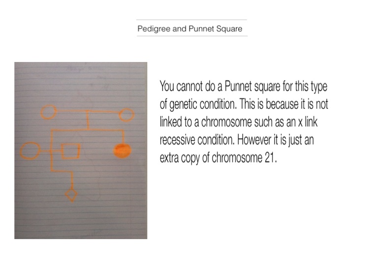 You cannot do a Punnet square for this type of genetic condition. This is because it is not linked to a chromosome such as an x link recessive condition. However it is just an extra copy of chromosome 21.