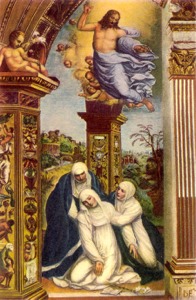 When Catherine was six, she had a vision that may have determined her vocation. She was on her way home with her brother when she stopped and had a vision of Jesus Christ seat in glory with the Apostles. A year later, she made a secret vow to give her whole life to God.