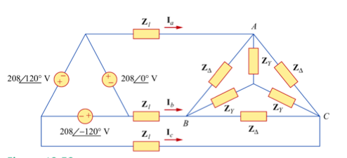 Find the line currents Ia,Ib, and Ic in the three-phase network. Take