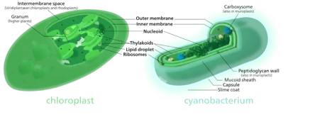 -Among eukaryotes that acquired their plastids directly from bacteria (known as Archaeplastida), the glaucophyte algae have chloroplasts that strongly resemble cyanobacteria. In particular, they have a peptidoglycan cell wall between the two membranes.