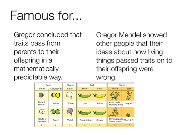 Gregor concluded that traits pass from parents to their offspring in a mathematically predictable way.