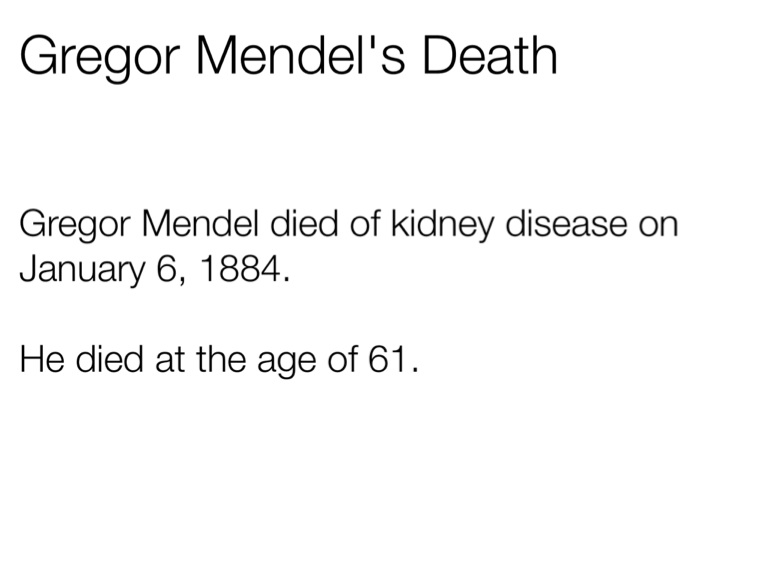 Gregor Mendel died of kidney disease on January 6, 1884.