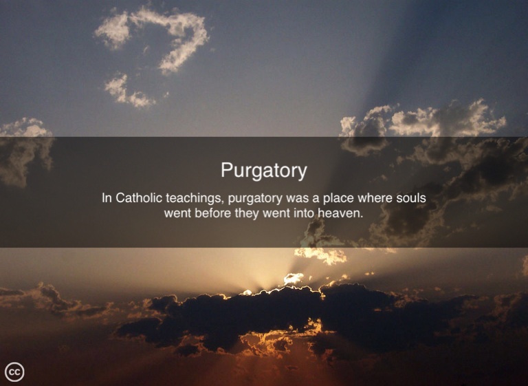 In Catholic teachings, purgatory was a place where souls went before they went into heaven.